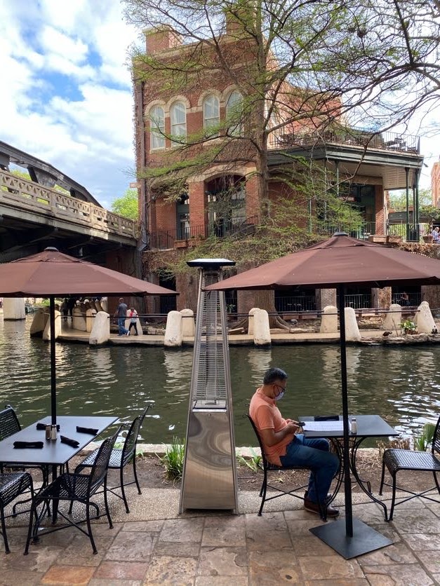 We flew out of Atlanta on April 4 and arrived in San Antonio, TX early in the afternoon. We checked into the Hyatt Regency Riverwalk Hotel and headed to the hotel bar for a cocktail. Known fact – bartenders are smart and a wealth of service industry knowledge, so we quizzed Greg, the bartender, and he rewarded us with a list of must-try bars and restaurants. He warned us to stay away from the touristy areas of the River Walk, but when in San Antonio … Well, yes, the overly-crowded River Walk was not a trip highlight but worth the see. Unfortunately, as we munched on bar food at our riverside table, I noticed that even though we were outside, EVERYONE wore a mask. Thankfully, I had a nice glass of Pinot Grigio waiting to help me cope with the reality that I’d been lured by fake news.
