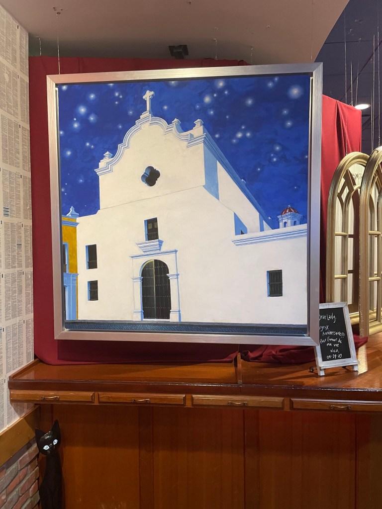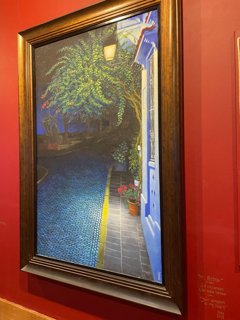 Old San Juan surprised and enchanted many times, especially the night we stumbled into an art show at The Poet’s Passage. The featured artist’s work captured San Juan scenes masterfully. His biography reads like a romance novel, so this romance writer purchased several works.